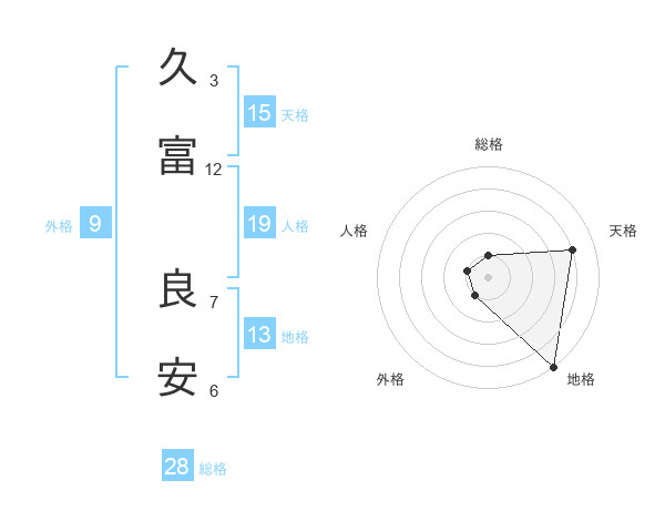 久富 良安さんの地格は13画の5点!