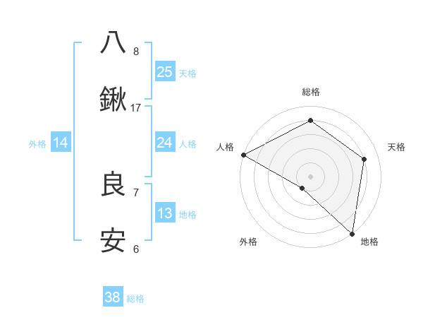 八鍬 良安さんを姓名の画数から五運を鑑定