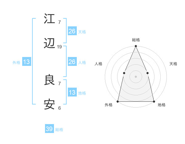 江辺 良安さんの外格は13画の5点!