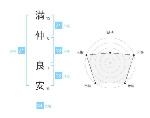 満仲 良安さんの天格は21画の5点!