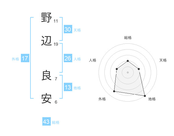 野辺 良安さんの地格は13画の5点!