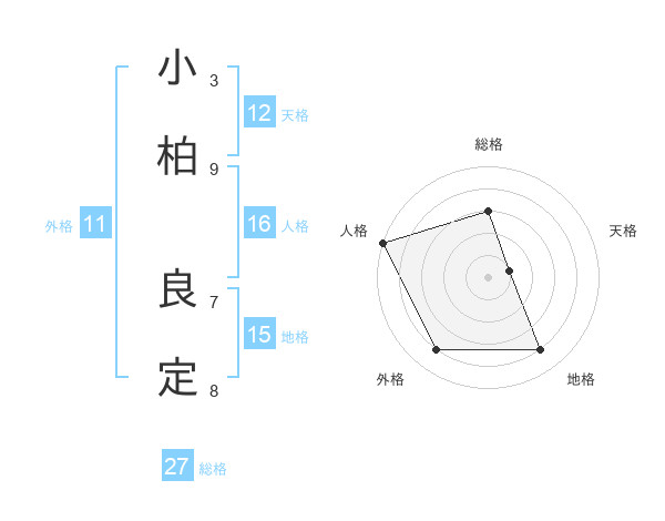 小柏 良定さんの総格は27画の3点