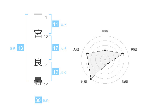 一宮 良尋さんの総格は30画の2点!