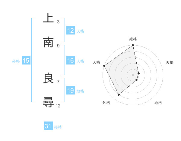 上南 良尋さんの総格は31画の5点!