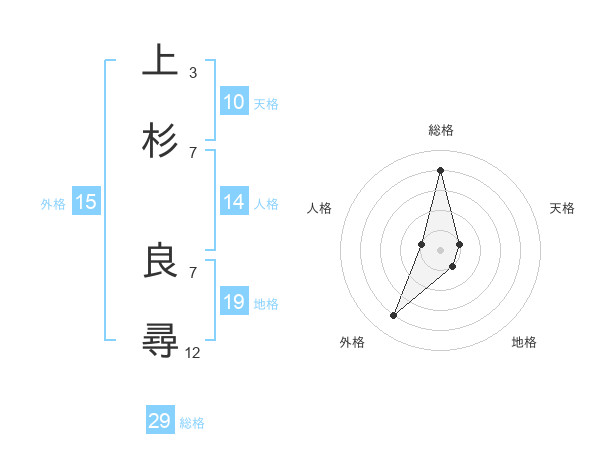 上杉 良尋さんを姓名の画数から五運を鑑定