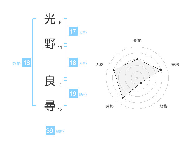 光野 良尋さんの天格は17画の4点!