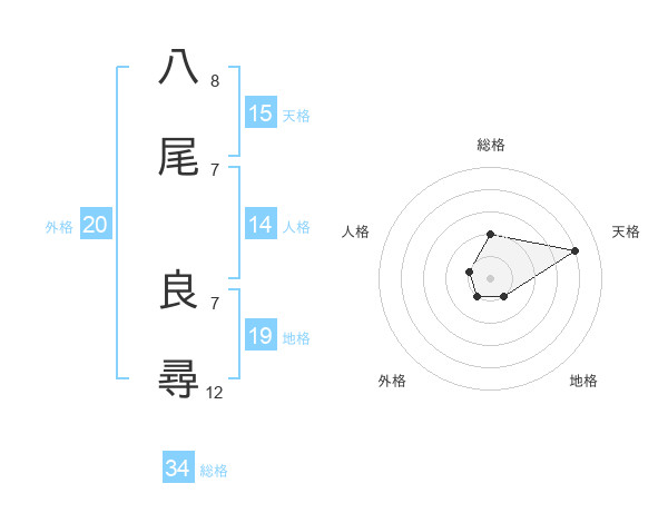 八尾 良尋さんを姓名の画数から五運を鑑定