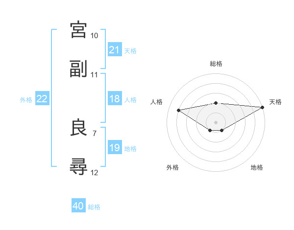 宮副 良尋さんの天格は21画の5点!