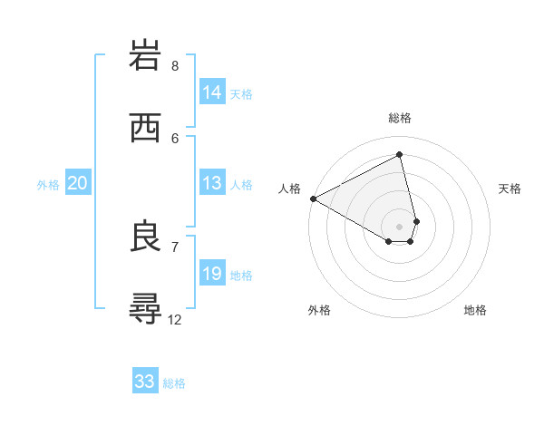 岩西 良尋さんを姓名の画数から五運を鑑定