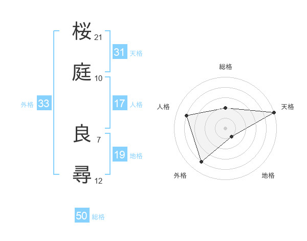 桜庭 良尋さんの総格は50画の2点!