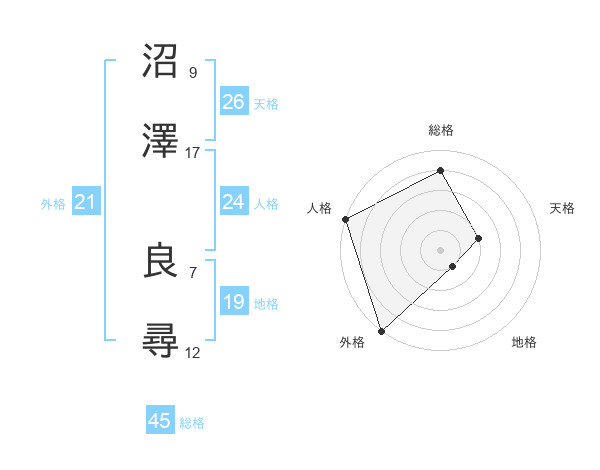 沼澤 良尋さんを姓名の画数から五運を鑑定