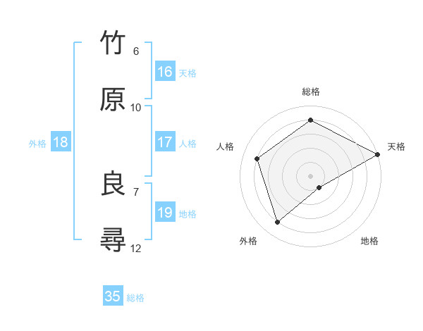 竹原 良尋さんを姓名の画数から五運を鑑定