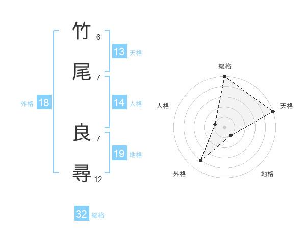 竹尾 良尋さんを姓名の画数から五運を鑑定