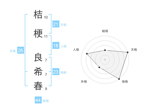 桔梗 良希春さんの総格は44画の2点!