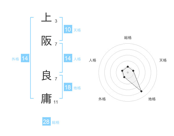 上阪 良庸さんの総格は28画の1点!