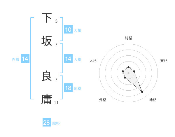 下坂 良庸さんの総格は28画の1点!