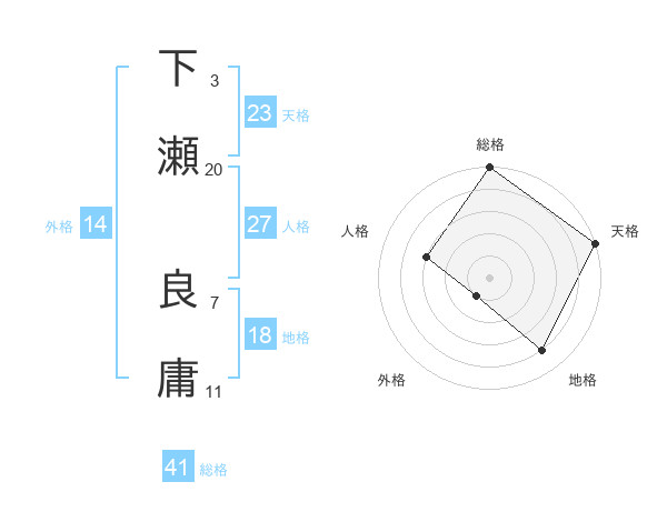 下瀬 良庸さんを姓名の画数から五運を鑑定