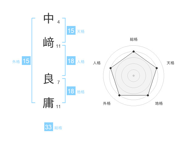 中﨑 良庸さんの総格は33画の4点!