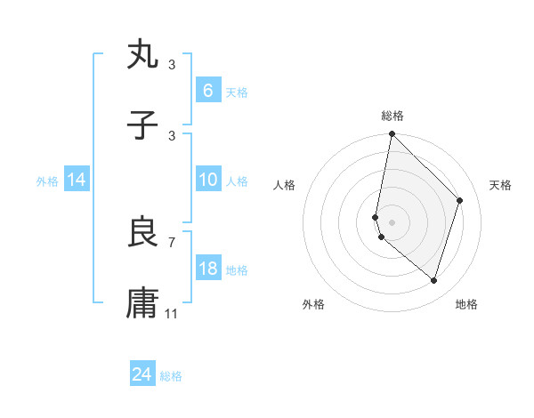 丸子 良庸さんの総格は24画の5点!
