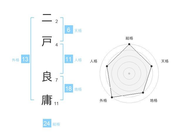 二戸 良庸さんを姓名の画数から五運を鑑定
