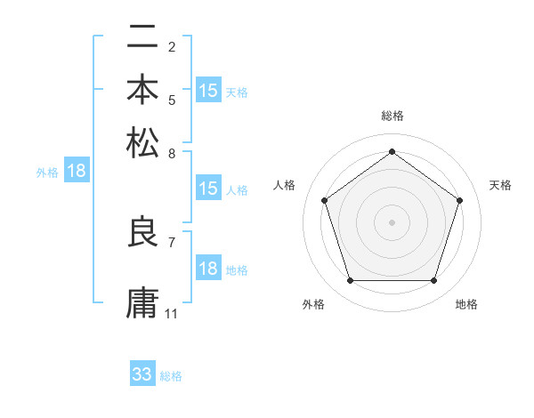 二本松 良庸さんの総格は33画の4点!
