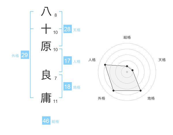 八十原 良庸さんを姓名の画数から五運を鑑定