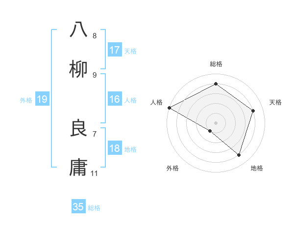 八柳 良庸さんの総格は35画の4点!