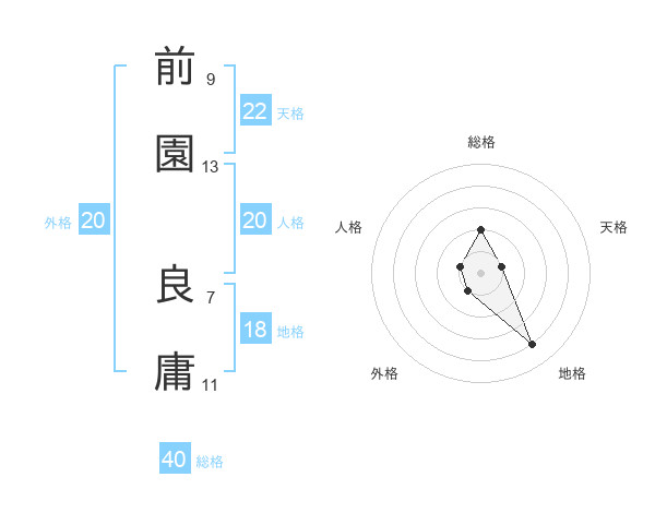 前園 良庸さんの総格は40画の2点!