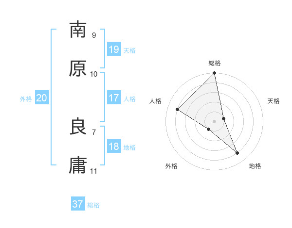 南原 良庸さんの総格は37画の5点!