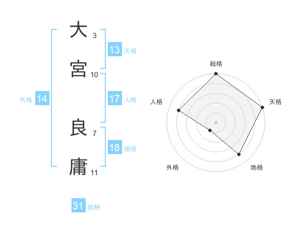 大宮 良庸さんを姓名の画数から五運を鑑定