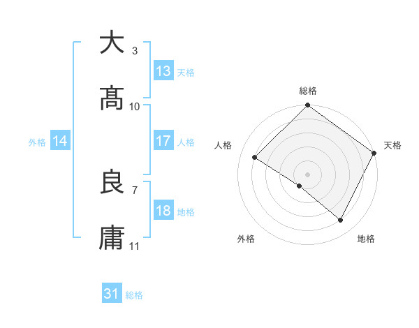 大髙 良庸さんを姓名の画数から五運を鑑定
