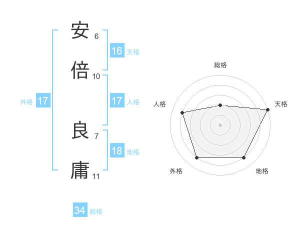 安倍 良庸さんの総格は34画の2点!