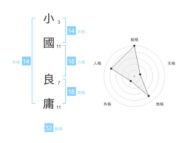 小國 良庸さんの総格は32画の5点!