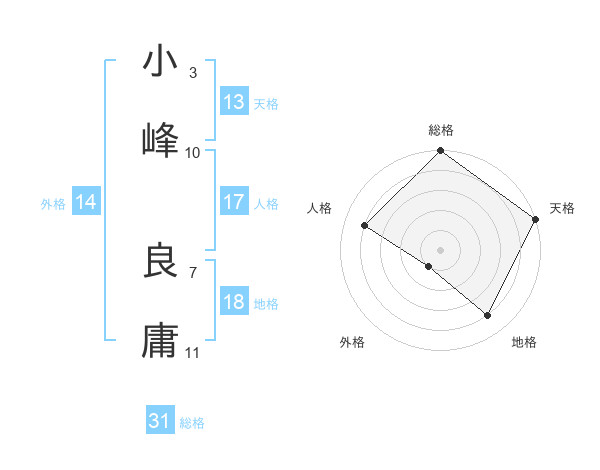 小峰 良庸さんの総格は31画の5点!