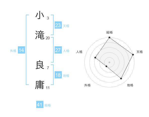 小滝 良庸さんの天格は23画の5点!
