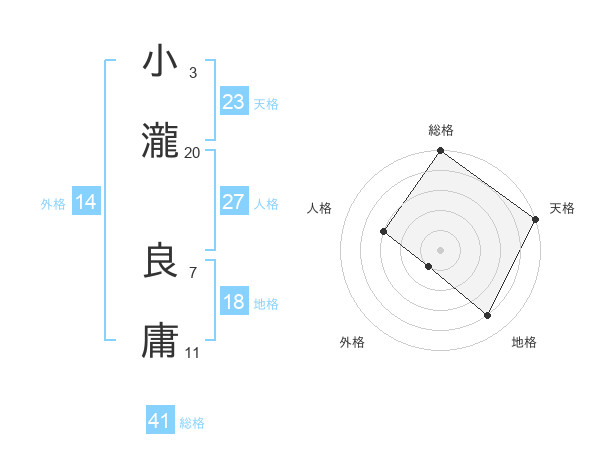 小瀧 良庸さんを姓名の画数から五運を鑑定