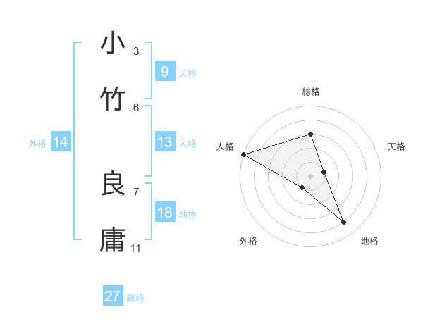 小竹 良庸さんの総格は27画の3点!