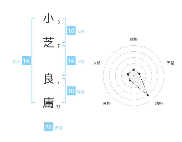 小芝 良庸さんの総格は28画の1点!