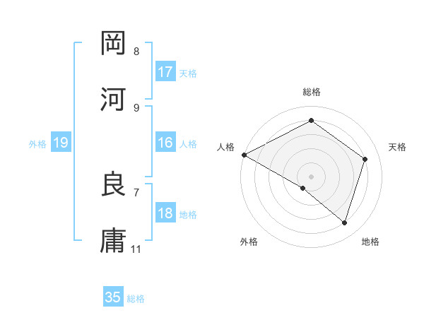 岡河 良庸さんの総格は35画の4点!