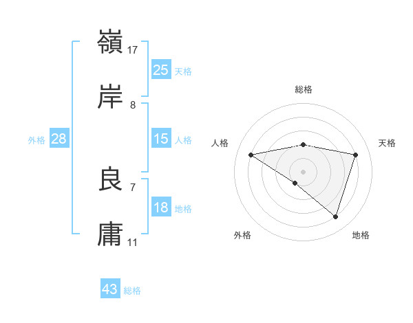 嶺岸 良庸さんの総格は43画の2点!