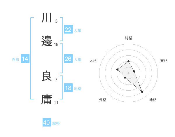 川邊 良庸さんの総格は40画の2点!