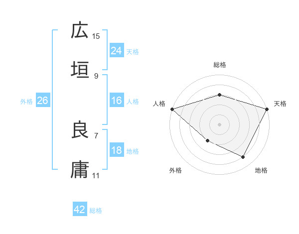 広垣 良庸さんを姓名の画数から五運を鑑定