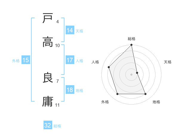 戸高 良庸さんの総格は32画の5点!