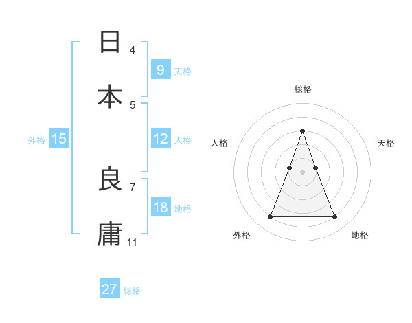 日本 良庸さんの総格は27画の3点!