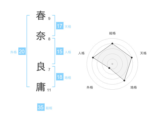 春奈 良庸さんの総格は35画の4点!