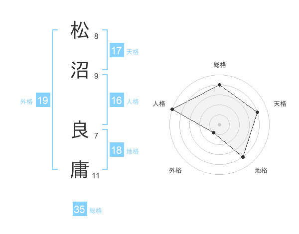 松沼 良庸さんの総格は35画の4点!