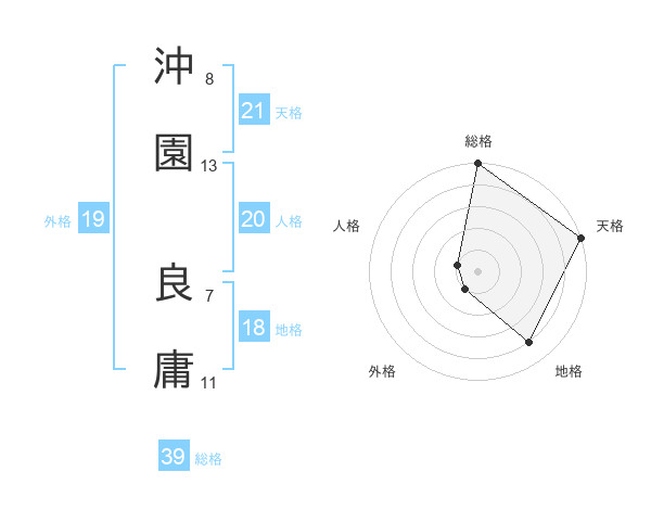 沖園 良庸さんを姓名の画数から五運を鑑定