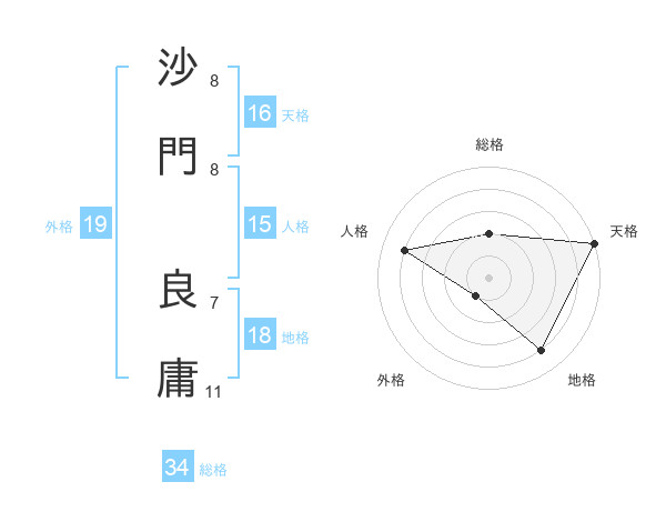 沙門 良庸さんの人格は15画の4点!