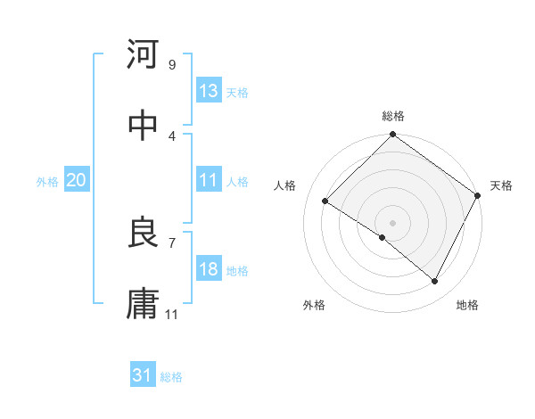 河中 良庸さんの総格は31画の5点!
