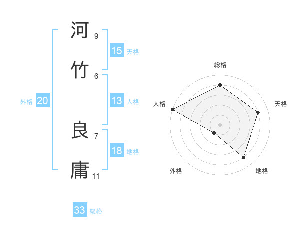 河竹 良庸さんの天格は15画の4点!